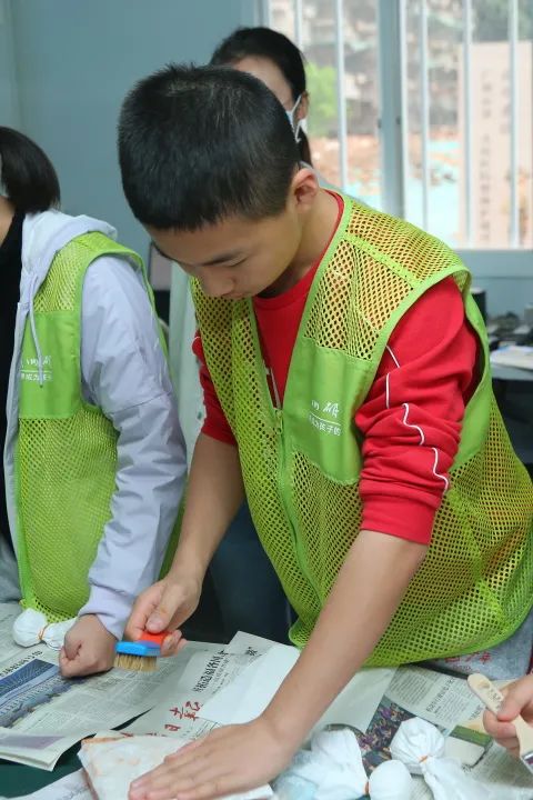 文物拓片是一种传统的文物复制技术,将文物的图案、文字或纹饰清晰地转印到纸上。通过拓片,同学们可以近距离观察和学习古代文化艺术,同时也是一种重要的文物保护和传播手段。