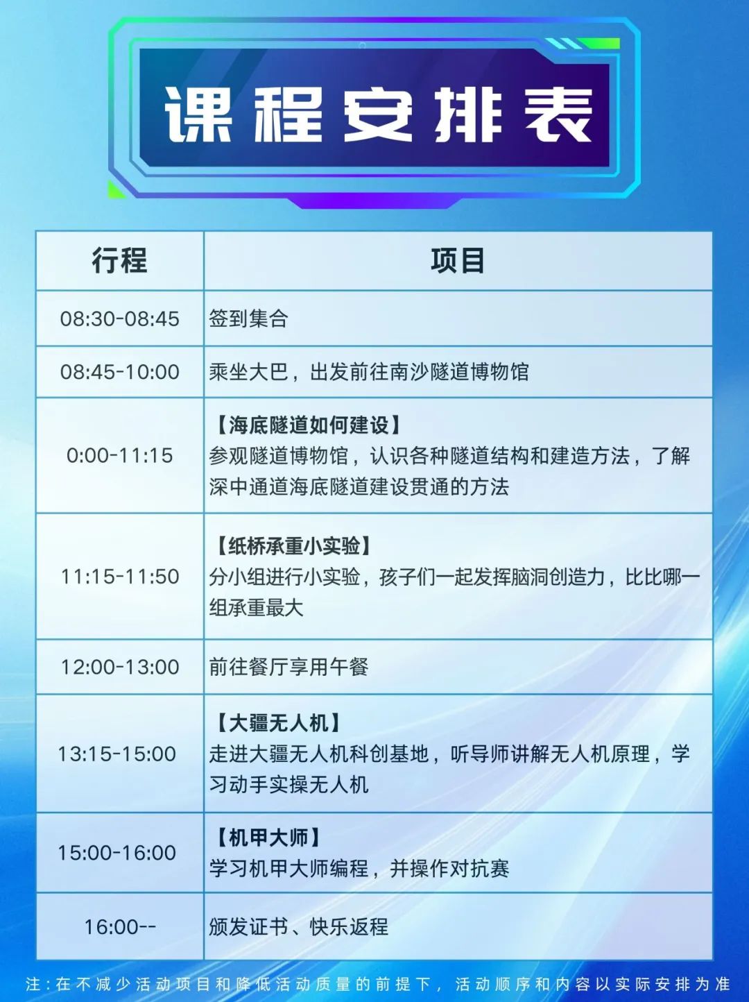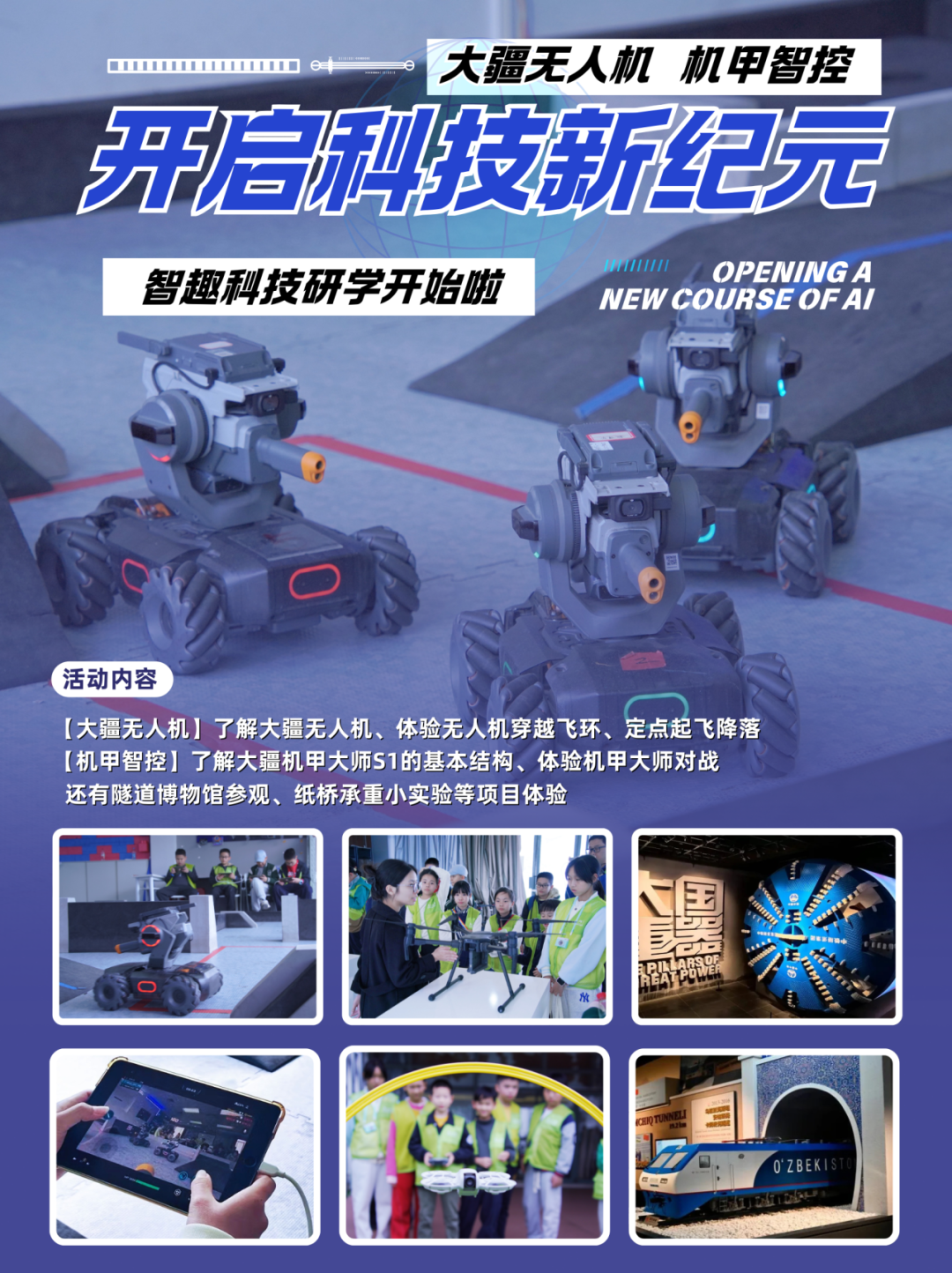 2、项目:隧道博物馆参观、纸桥承重小实验、大疆无人机与机甲大师体验