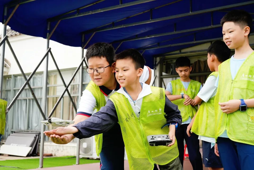 在南沙大疆科创基地,孩子们将有幸见到大疆无人机各款明星产品,学习无人机知识,体验酷炫的 DJI Neo 掌上无人机