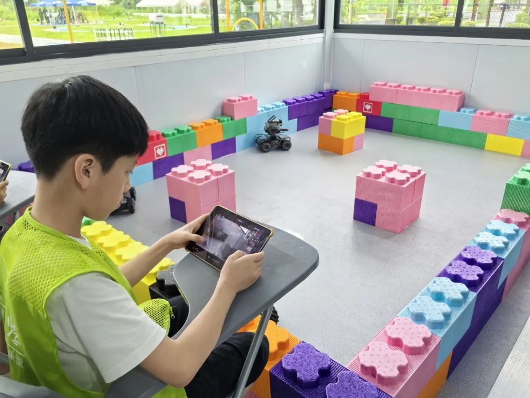 瞧,孩子们全神贯注,遥控着它灵活地飞跃一个个精心设置的障碍,每一次成功穿越,都让孩子们欢呼雀跃。