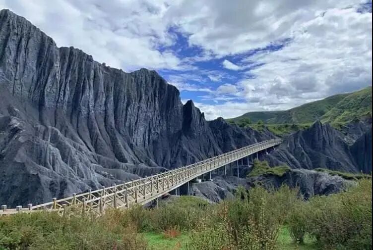 然后我们去到八美【墨石公园】。八美地质公园景区地处中国最美景观大道318国道核心区,是香格里拉之巅通向香格里拉之魂稻城亚丁的中转站,被称为“中国地质百慕大”,是我国唯一的高原石林景观,同时也是318道上新晋的网红打卡地,具有“春赏格桑夏避暑,秋观彩林冬踏雪”的风光;墨石公园有着许多千姿百态的奇幻墨石,忽而是高耸绿地又忽而裸露出冷峻的黑灰岩面,参差起落极具外星球般的异域风情。其中还有一条名为卡玛的河穿墨石公园而过,传说当年格萨尔王王妃珠姆在此游玩儿时掉下一条丝巾,丝巾化为卡玛河,滋润着这片石林以及当地的人们。