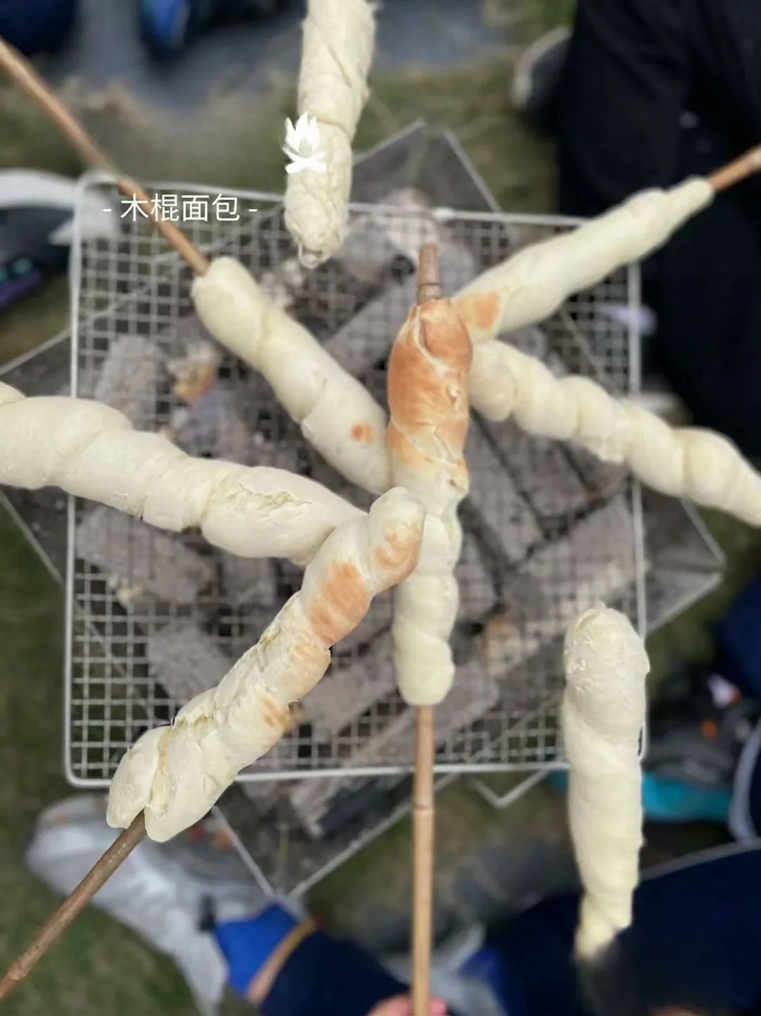 让孩子体验搓成长条加上花生酱绕在竹棍上,