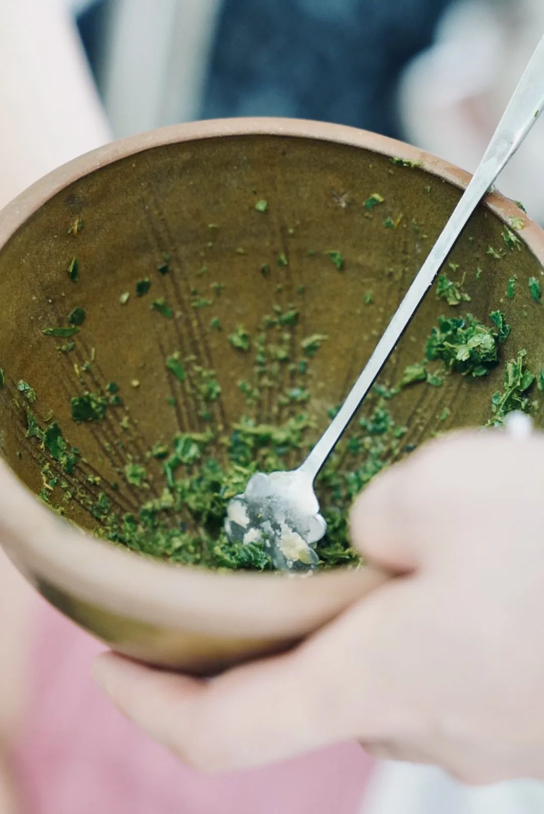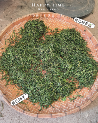 让我们将采摘的茶叶捣碎