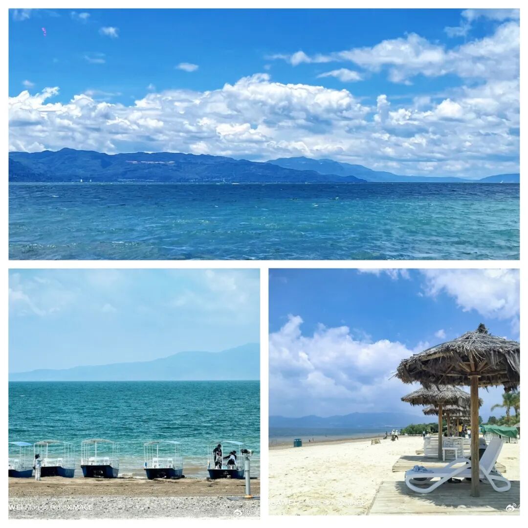 抚仙湖烟波浩淼,清莹透彻,水质极佳,空气清新。湖边榕树沙滩玩耍,散步。