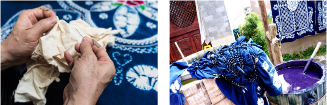 前往喜洲古镇【扎染体验】,依然可以看到白族建筑和穿着民族服饰的阿姨,民族风情浓厚。这里的扎染艺术十分出名,是很多游客来这里的首要原因,一匹匹长条的画布飘扬在古色古香的院落里,煞是好看。