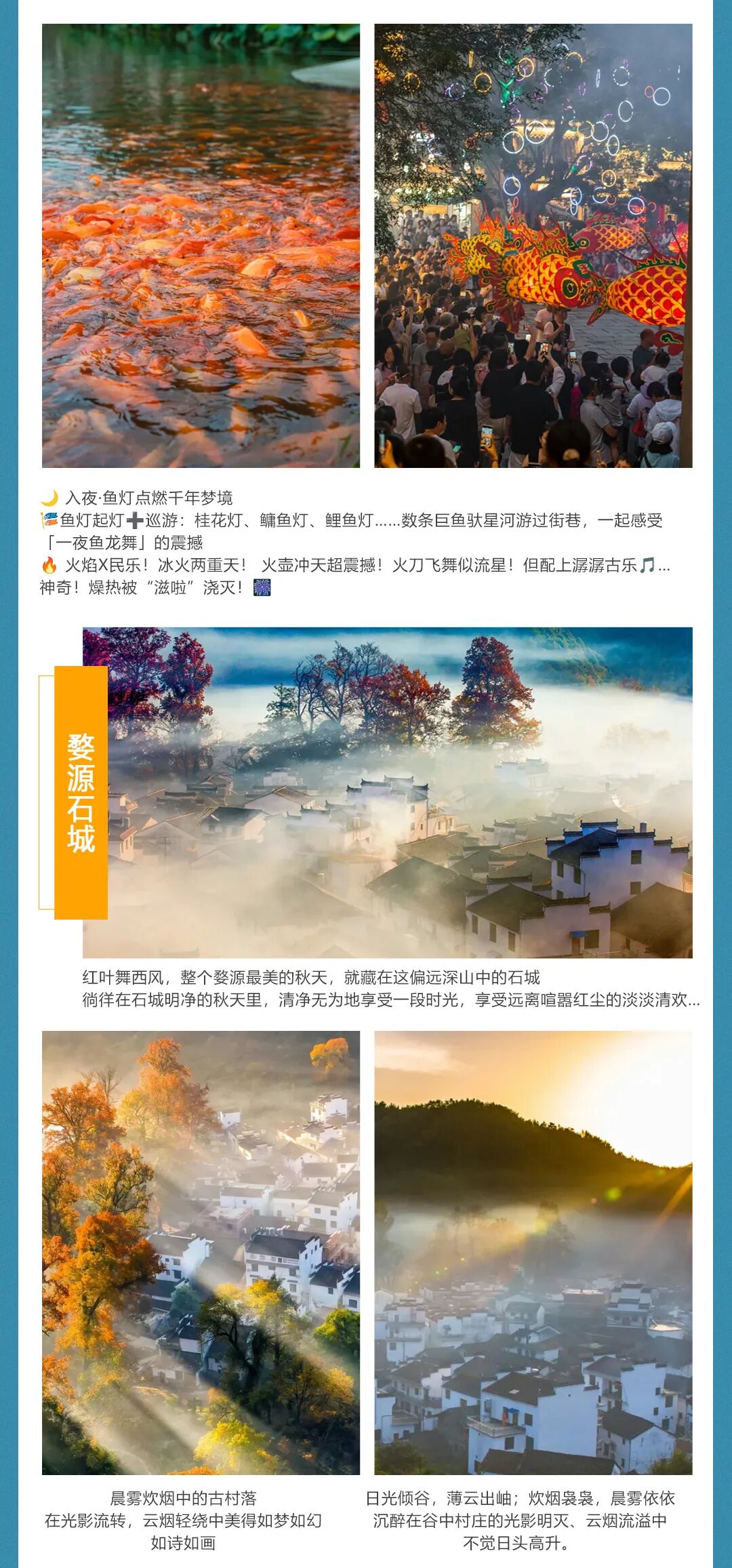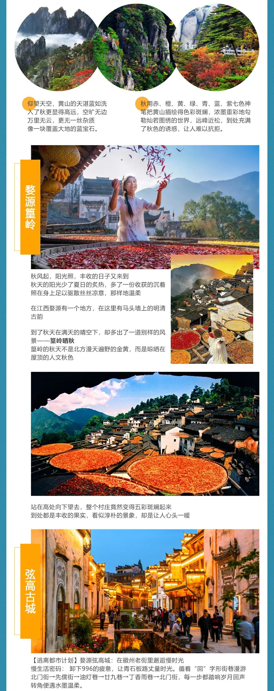 【活动景点】黄山·宏村·塔川·儒村·篁岭·弦高城西湖凼·石城·瑤里古镇