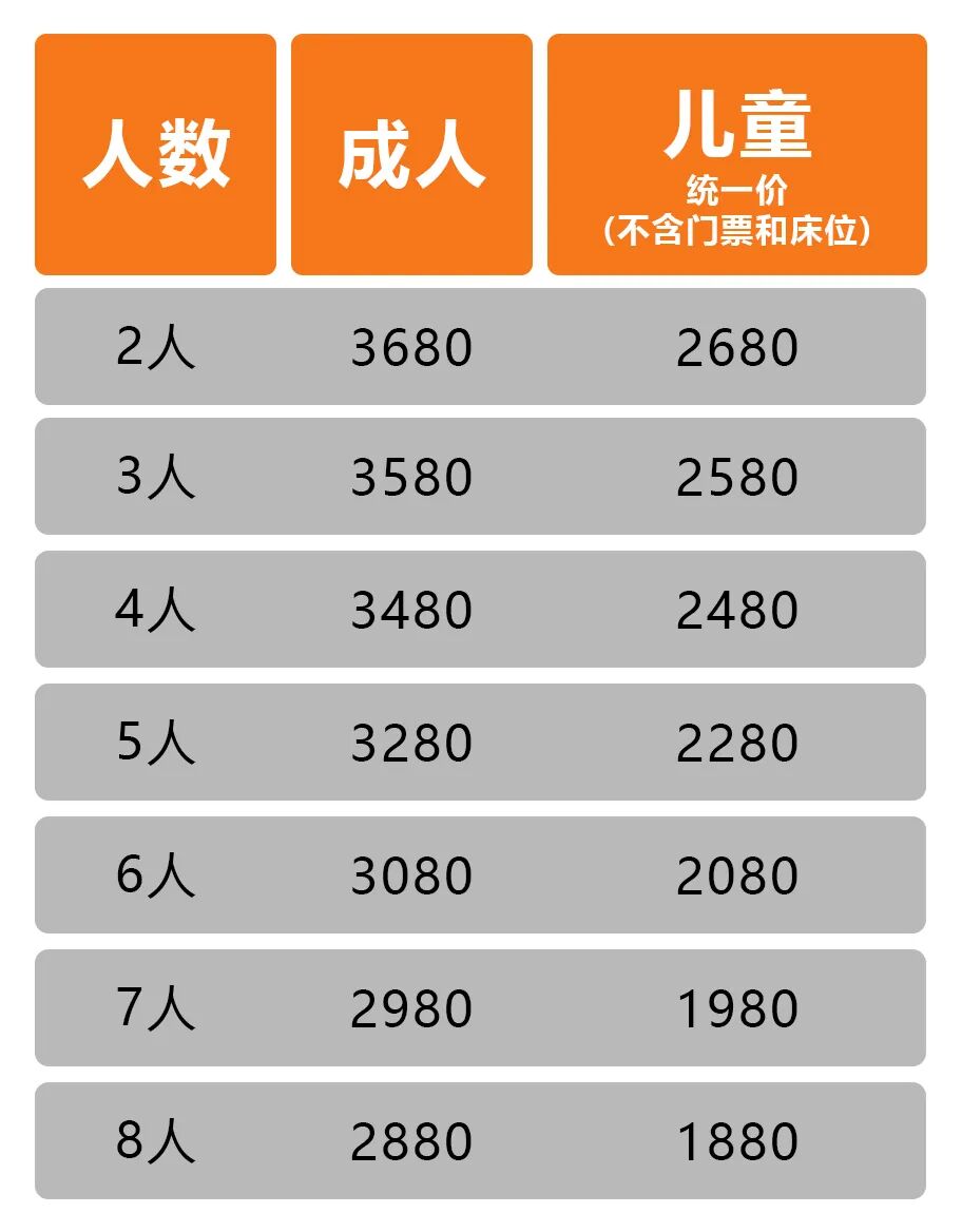 活动费用:28人品质团 成人 2480元/人