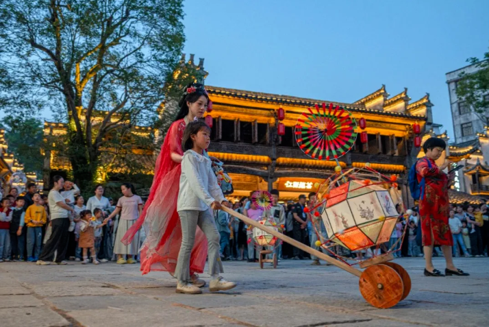 后游览婺源弦高城·西湖凼文旅街,在西湖凼漫步,步步皆遇千年时光的回响。璧月门的城砖是岁月的信笺,密密麻麻写满老城的变迁;双巷交汇处的犁尖角,定格时空交错的岁月叠影;节孝牌坊在雕纹里封存着旧时的礼教风云;五福居是一方吉祥天地,化作茶馆邀人静坐细品时光的滋味;西湖凼湖畔,垂柳拂水,鱼群穿梭间,马头墙的倒影被风揉成了诗行。