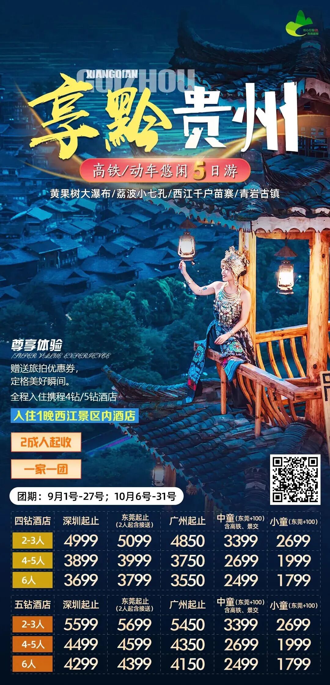 ✅3晚4钻/5钻酒店+西江内客栈