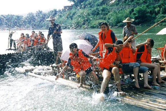 13:30 再次出发徒步漓江,到达冷水渡码头(需自费坐船过渡10元)。