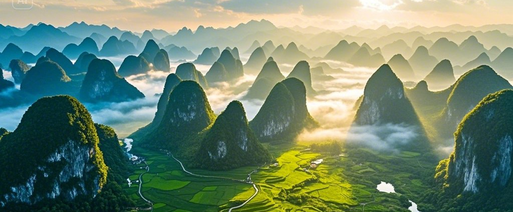 桂林山水甲天下,阳朔山水甲桂林。它有着冠甲天下的风景,山水间的一叶扁舟,沉醉于闲情雅致;也有着悠长曲折的古道,配以相间的亭台楼阁,倾心在诗情画意。这就是仿若梦的尽头——桂林阳朔。
