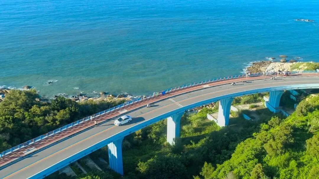 08:00 到达苏峰山停车场。可步行、租电动车( 参考20元/h)或坐接驳车(10元/人)浏览打卡6公里长的苏峰山环岛路,其中有两段蓝桥路拍照最为有特色。苏峰山是整个东山岛的制高点,一条蓝色的环岛公路藏在半山。伴着海风一路美拍,等风也等你。