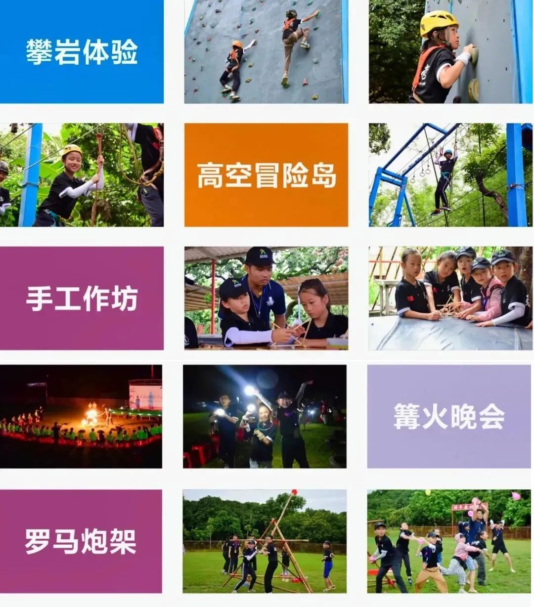 丰富多彩的营地生活,富有挑战性的项目设计,全面提升孩子自我独立、自我管理、自我调节等能力。