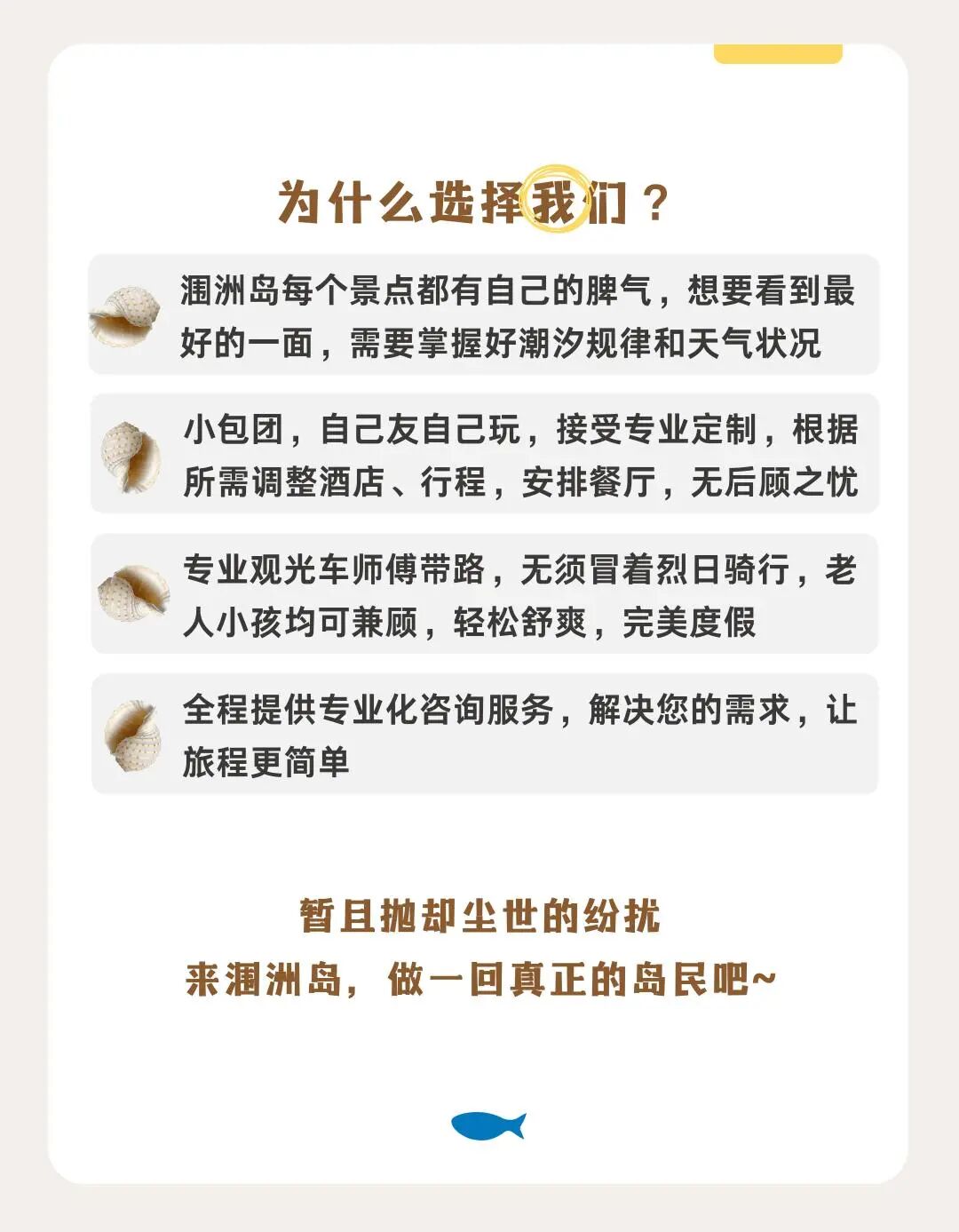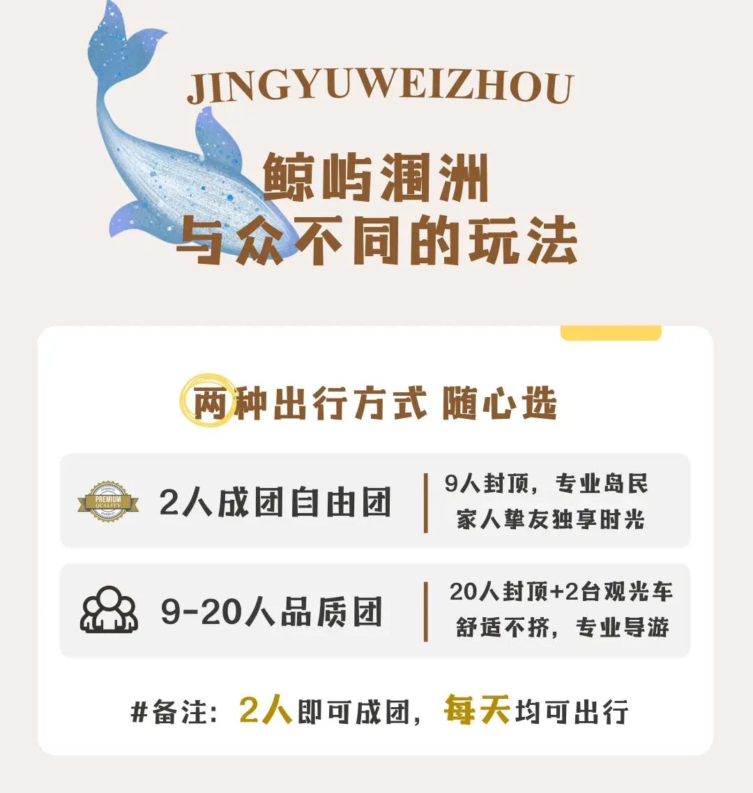 7、涠洲岛1次出海寻鲸费用(寻鲸为自然概率事件,不能确保100%能寻鲸成功;根据海况确定出海时间,如遇天气不允许出海,平日退还寻鲸费用280元/人,春节假期退还寻鲸费用380元/人);