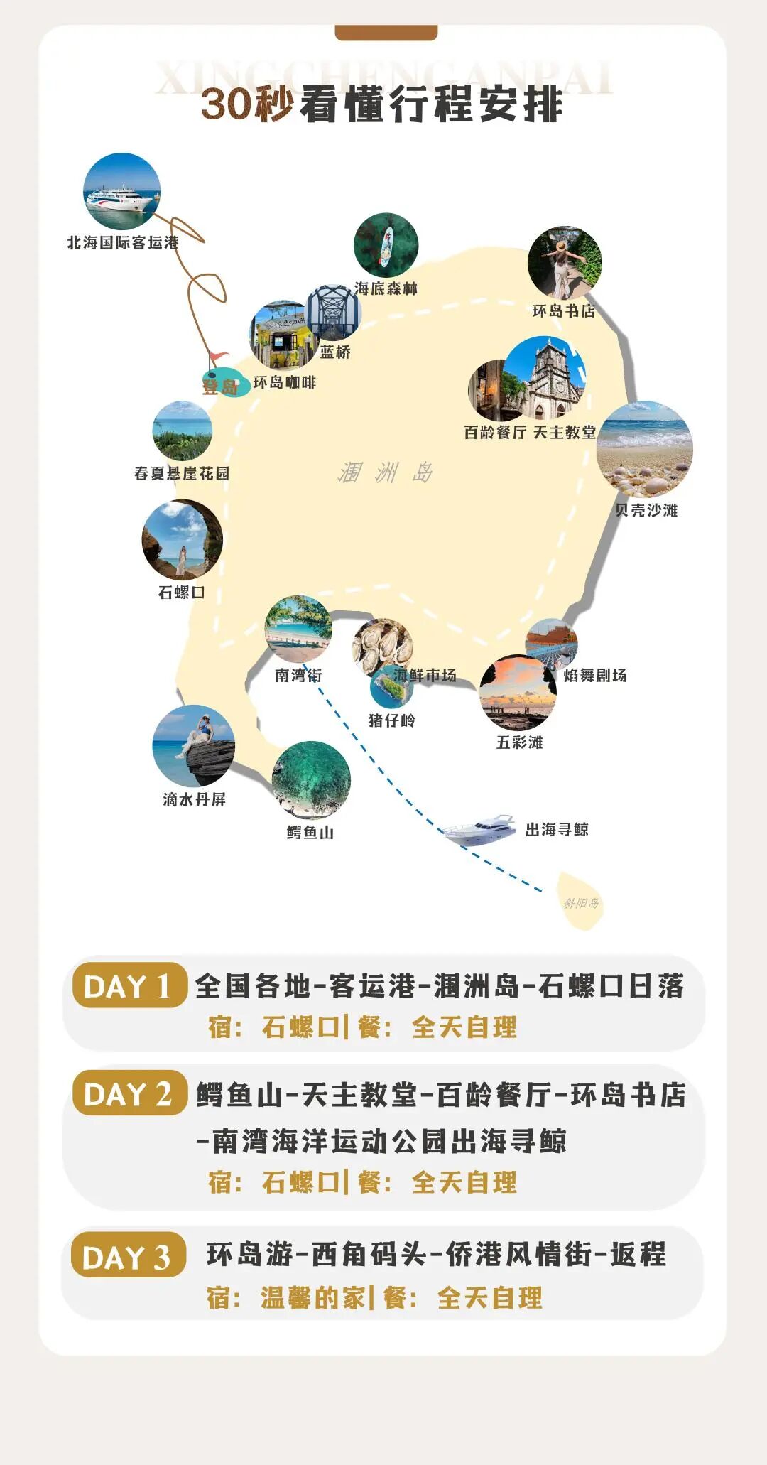注:报名当地集散套餐可在14:10 前到达北海站或14:30在北海国际客运港码头集合