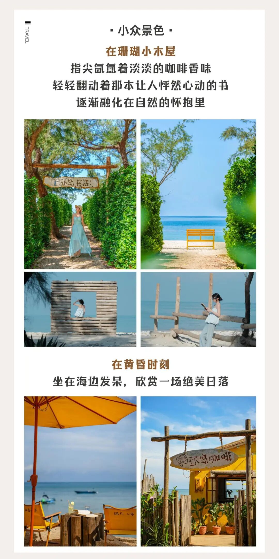 13:30 前往环岛书店,这是一家在海边的森林小木屋,边喝咖啡边赏海景,这里的海水颜色美的像画里调好的一般,海浪拍打的声音在此刻治愈了心灵;