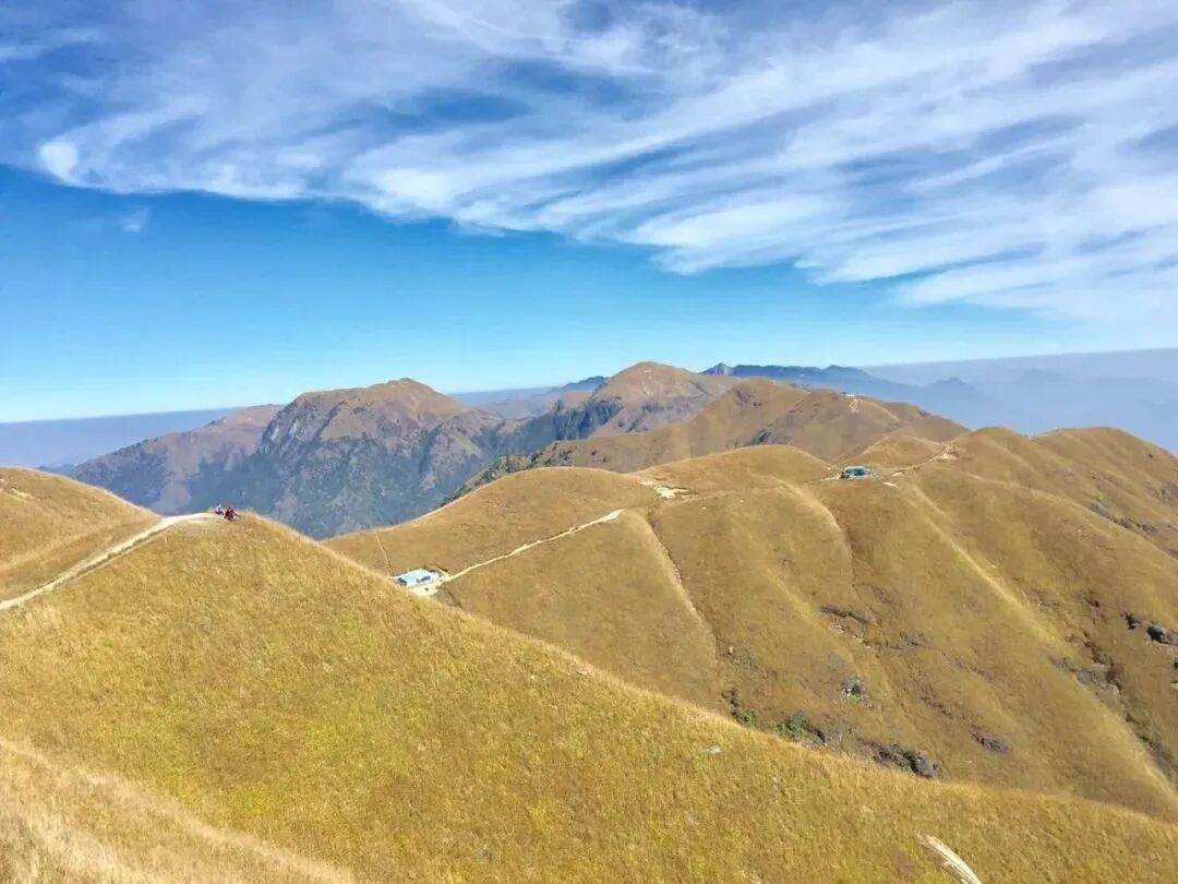 10:30-12:30 这个时间段沿着山脊行走,沿路漫山的草甸,十分迷人,会让你有一种置身梦幻的感觉。
