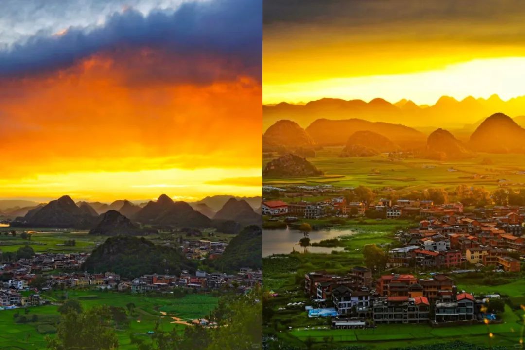 16:00 登【青龙山】,俯瞰普者黑全景,只见湖泊星罗棋布,孤峰此起彼伏,景色美不胜收,是拍摄普者黑美景的绝佳地点。还能欣赏绝美日落(视天气情况)。