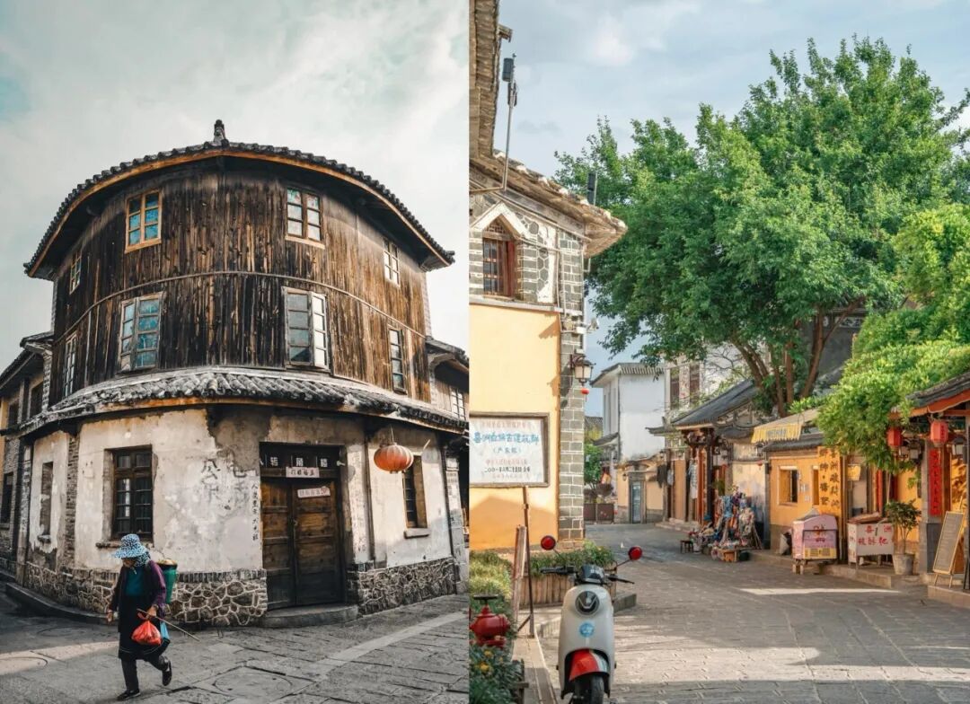喜洲古镇是大理白族文化的重要发源地,这里的建筑非常有特色,尤其是白族的民居,屋顶是飞檐翘角的,墙上还有精美的雕刻和彩绘。