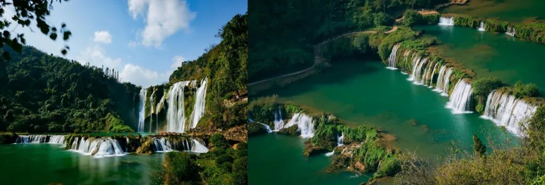 沿着瀑布群的栈道慢慢走,能近距离地欣赏到每个瀑布的独特魅力,有的瀑布气势磅礴,有的瀑布温柔婉约,真的让人叹为观止。