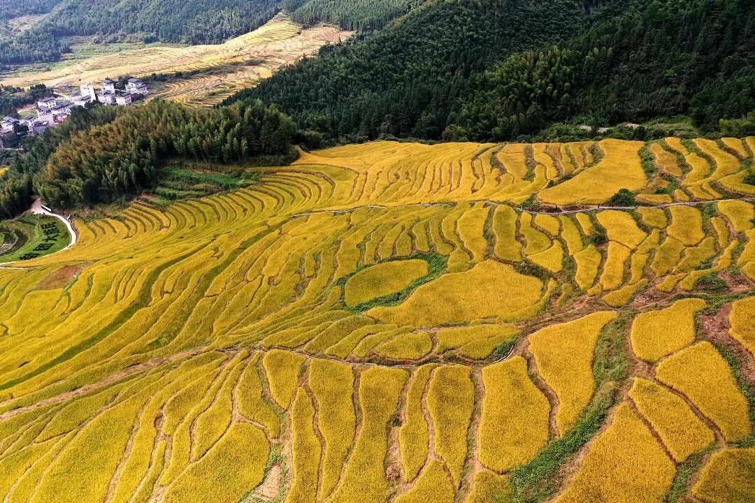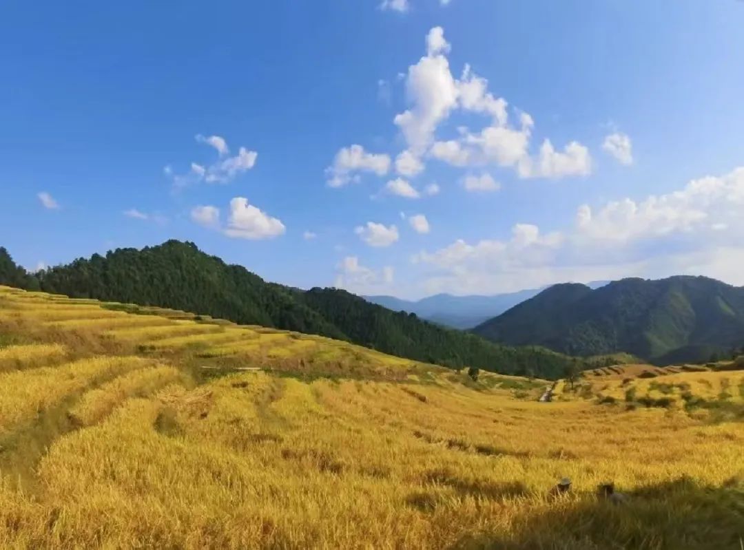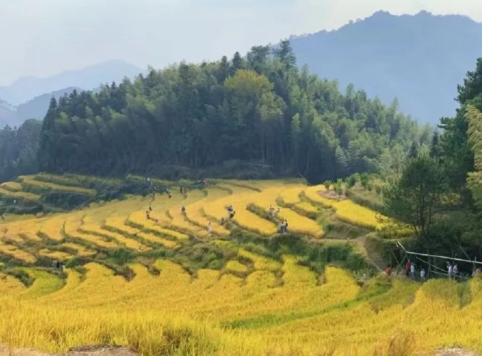 一大片金灿灿的金黄稻田,这景色绝对美爆了,