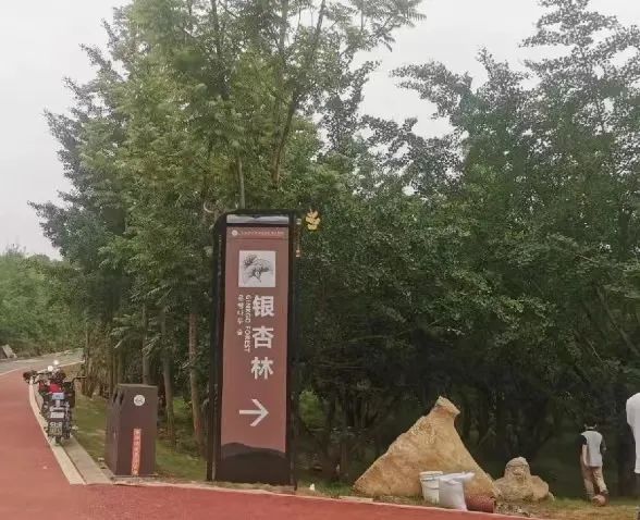 蓝色的银杏栈道像小河般流淌在银杏林,