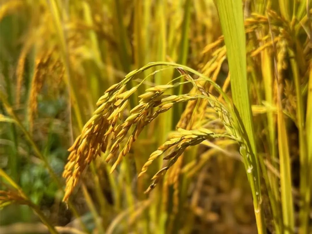 层层金黄的稻穗,仿佛镶嵌在大雾山脚的一片黄金