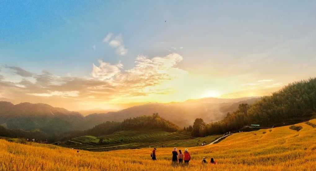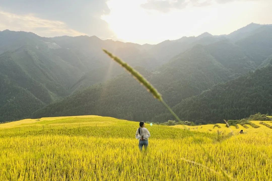 打卡广东醉美梯田,在金色大地上,赏醉美梯田落日