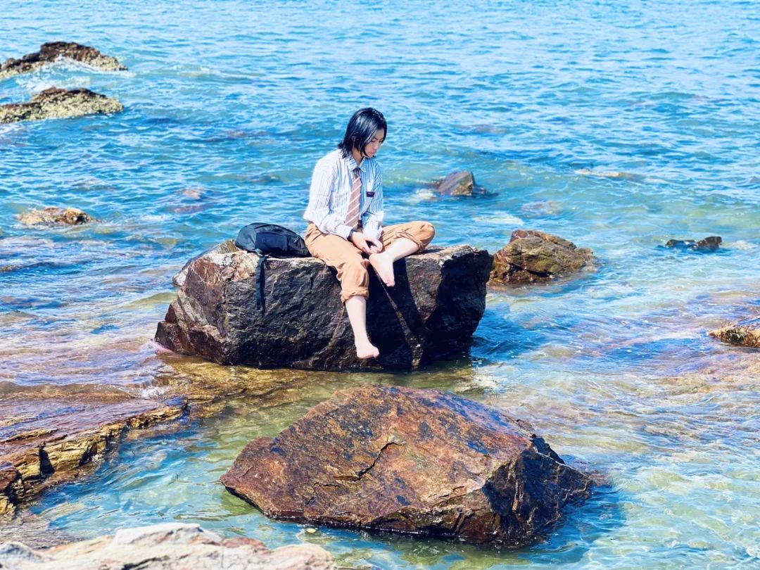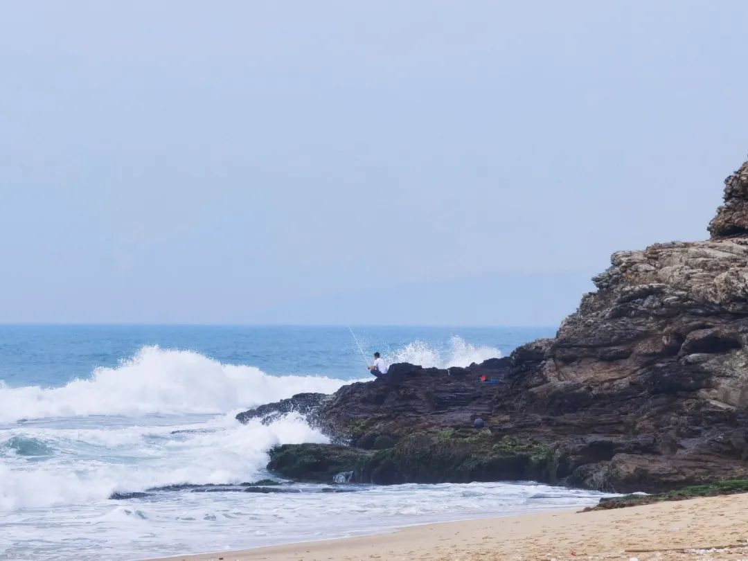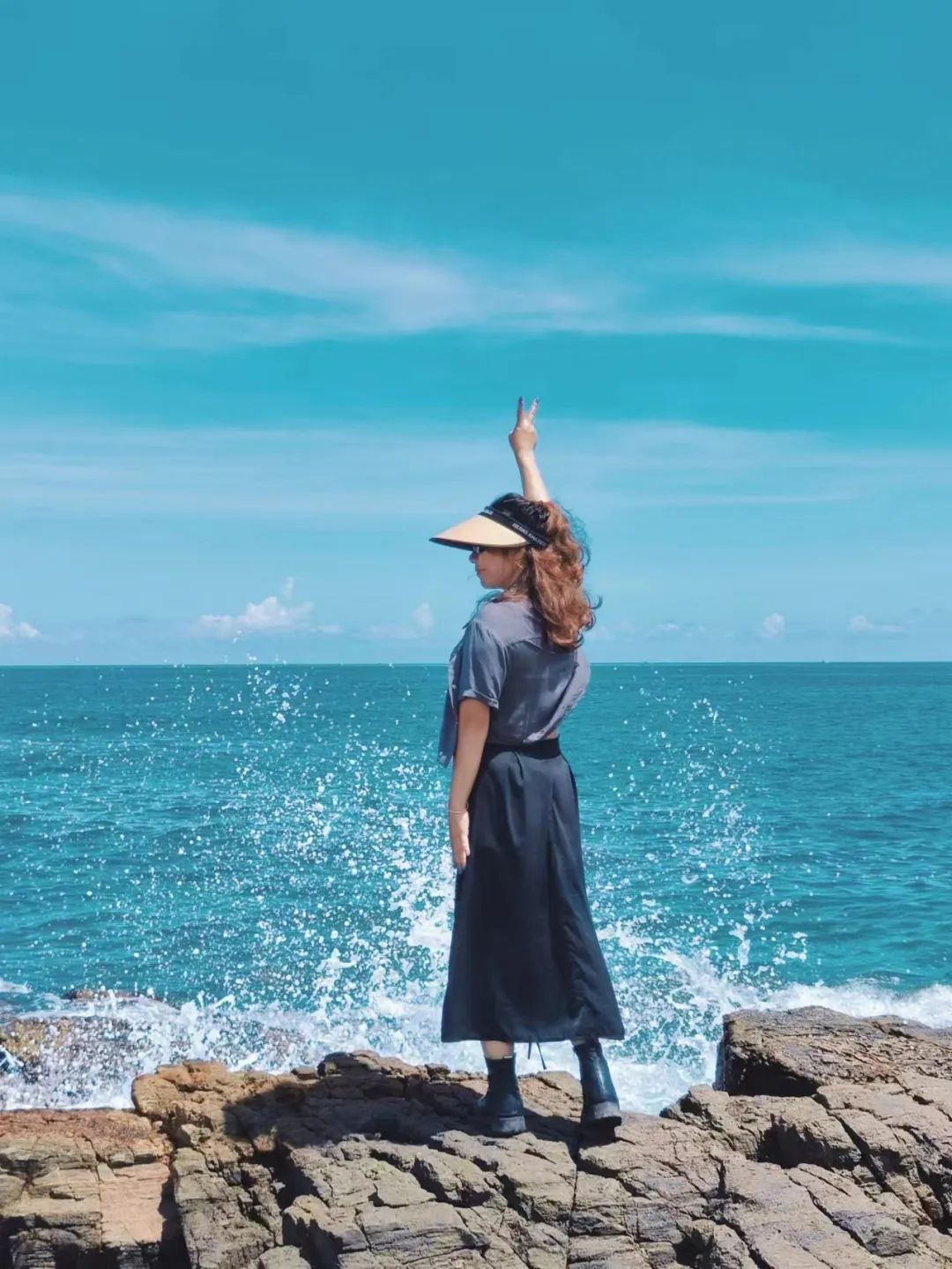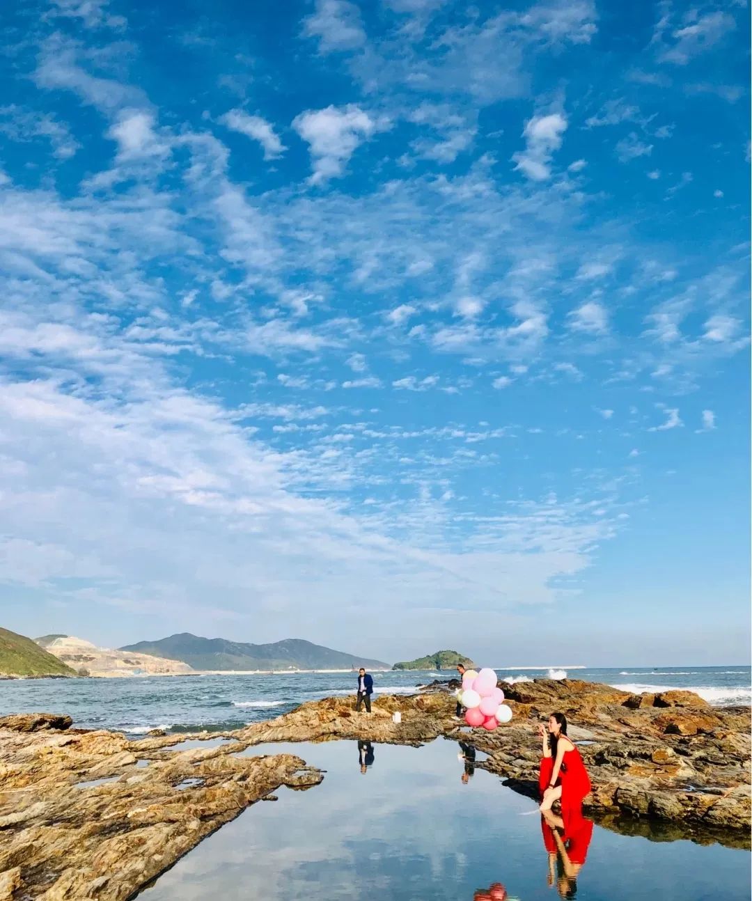 由于礁石是黑色的,海滩色调偏暗,建议穿饱和度高些的衣服拍照会很好看!