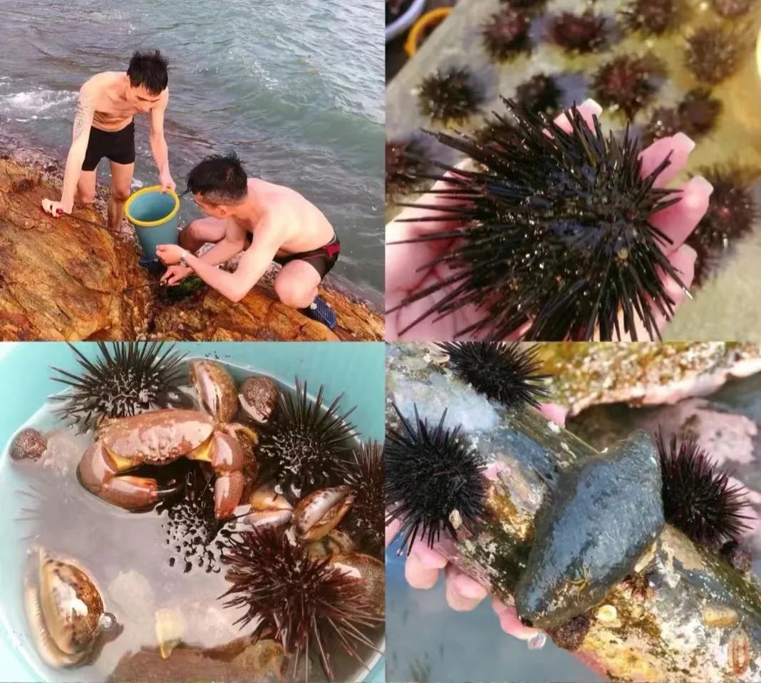这个由于未经开发,海货非常多,在礁石边就很容易弄到一些石鳖、将军帽、海虹、生蚝、牛角螺、猫眼螺、八爪螺、佛手、沙白、花甲、青口、猪仔螺、苦螺、螃蟹、藤壶等等。