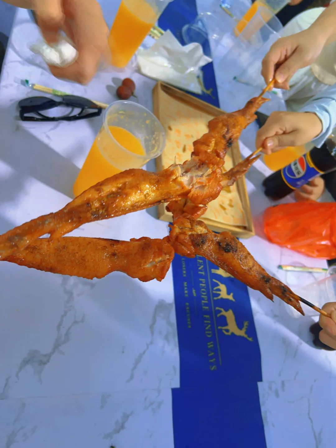 海虾10串、多春鱼10串、鸡全翅10串、羊肉串10串、牛肉串10串、鸡脆骨10串、热狗10串、腊肠小串10串、五花肉10串、鸡胗10串、牛油小串10串、鱿鱼板10串、鱼豆腐10串、韭菜10串、玉米粒10串另:锡纸娃娃菜1份、锡纸金针菇1份、烤饼 5个、茄子2条、卤花生 1份、烧烤调料每桌一份(20人起订)