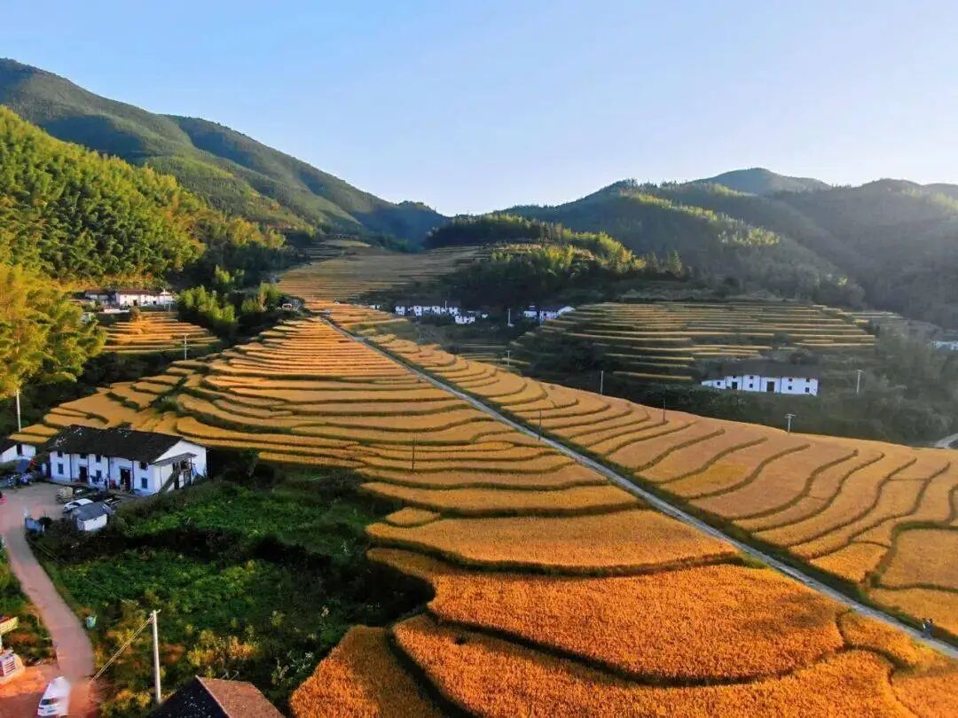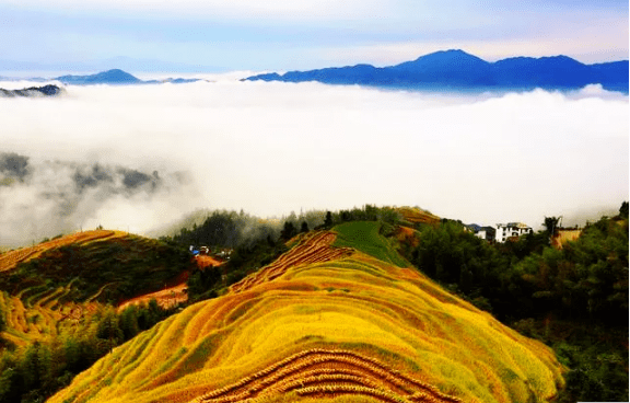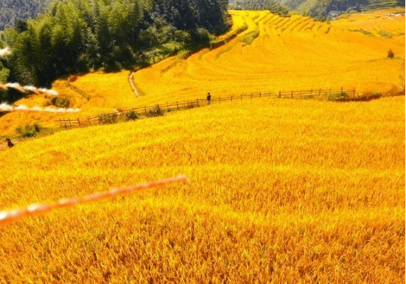 近4万亩的高山梯田上一片金黄