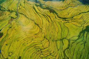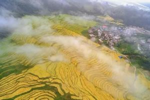 层层叠叠的梯田线条勾勒出一幅美丽的丰收画卷。