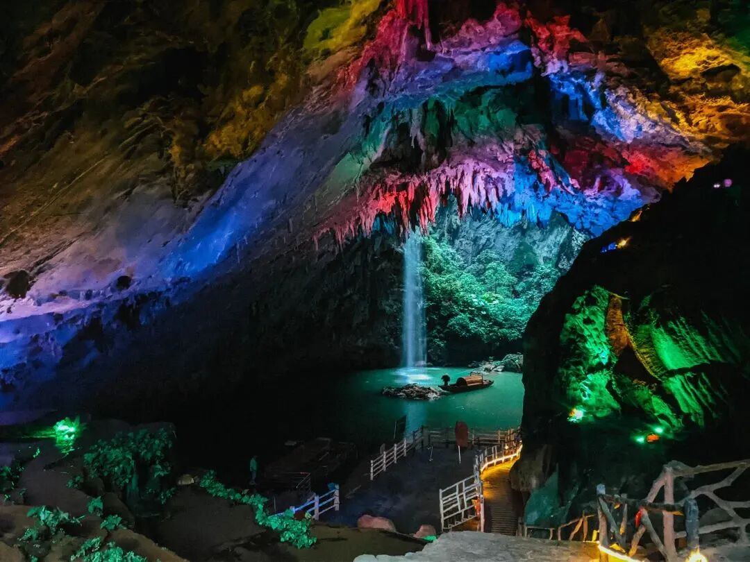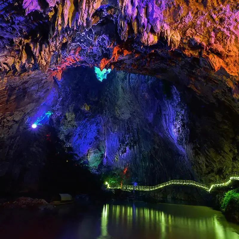 华南地区至大的天坑,坑内具有亿万年历史的钟乳石形态各异、姿态万千。坑内水、林、光、石的完美结合,清、幽、静、奇的独特美景,仿若人间仙境。
