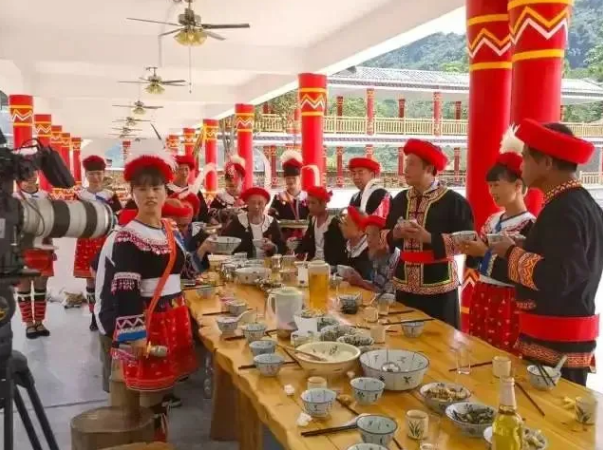瑶寨特色:长桌宴~瑶族歌舞~瑶寨篝火~原生态敬酒仪式