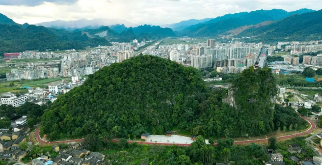 这里设有观景台。在观景台上可见,这些石山林立,座座背朝 东北 方向,面向西南方向,形同朝拜瑶山大王的群体。