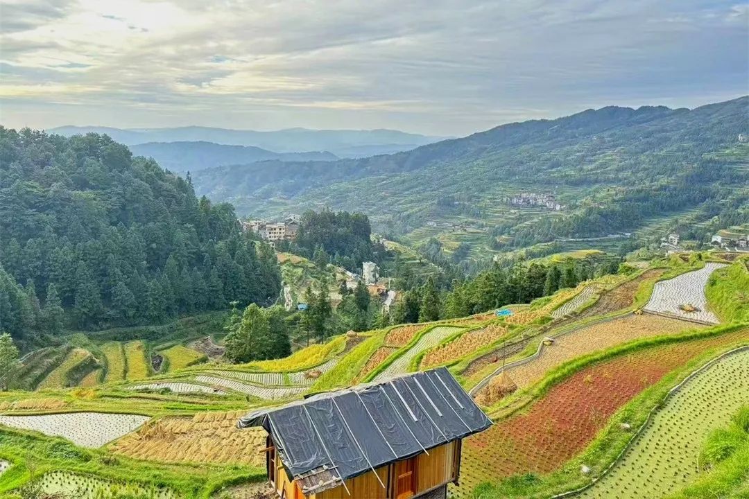 16:00 有兴趣的小伙伴,可以跟随领队前往【堂安梯田】,秋日的梯田稻浪翻涌,映衬着侗族特色的木房屋,营造出一幅迷人的山水画卷
