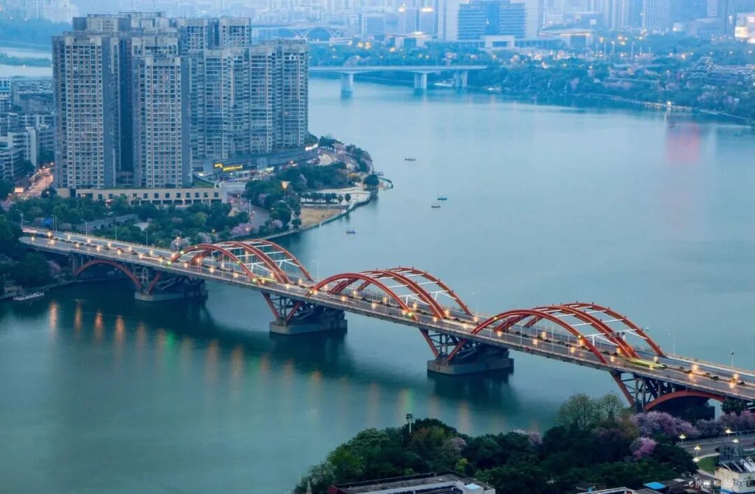 华灯初上,柳江两岸车水马龙、流光溢彩