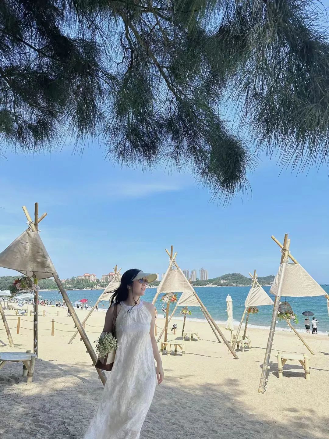 漫步月牙形的【马銮湾】。这里视野开阔,蓝天白云、碧水沙滩、青葱林带。星级沙滩戏水、游泳