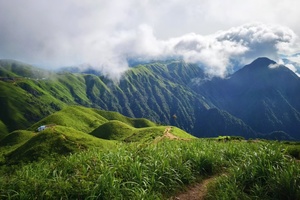满眼翠绿的高山草甸,云雾飘渺的山巅
