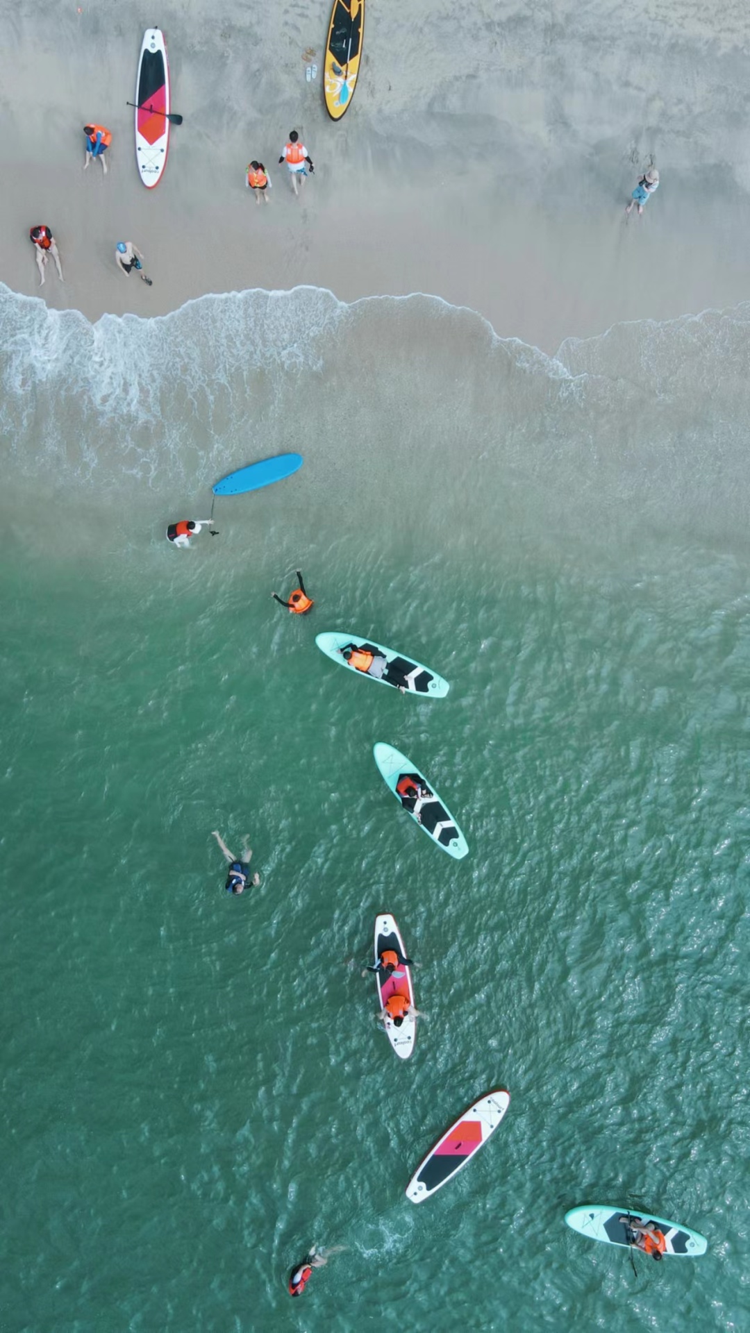 15:00 扎营结束,领取救生衣和冲浪板然后就可以去【海上冲浪】或者去【划浆板】,2-3人一块板有轮着玩(也会发放赶海小工具给到大家在沙滩上赶海)。