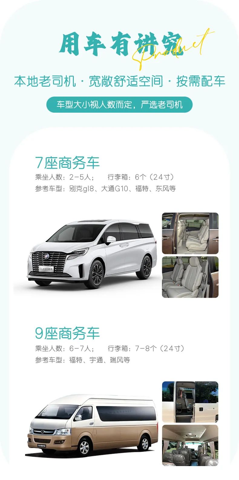 6-7人安排 九座商务车(司机兼管家)