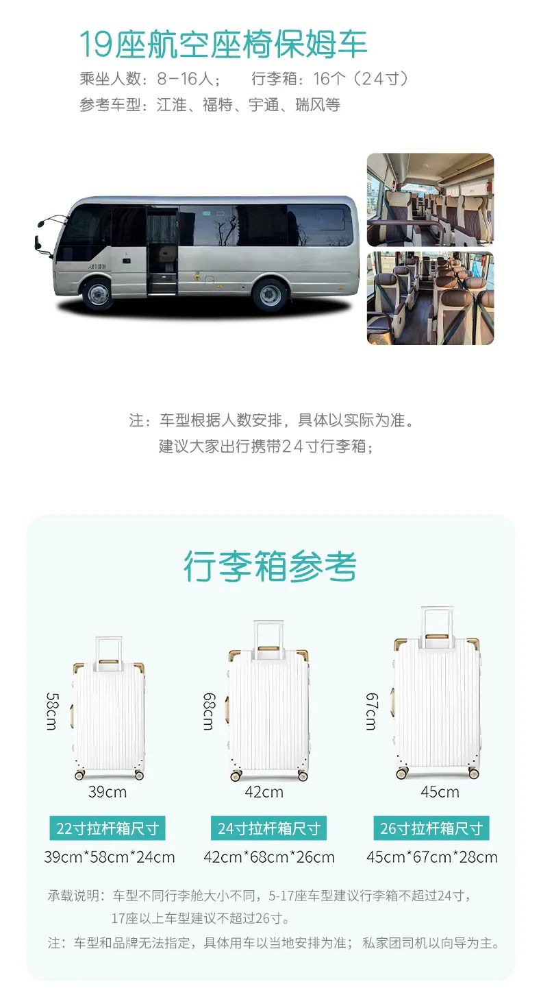 8-16人安排 19座2+1车型(单独领队)