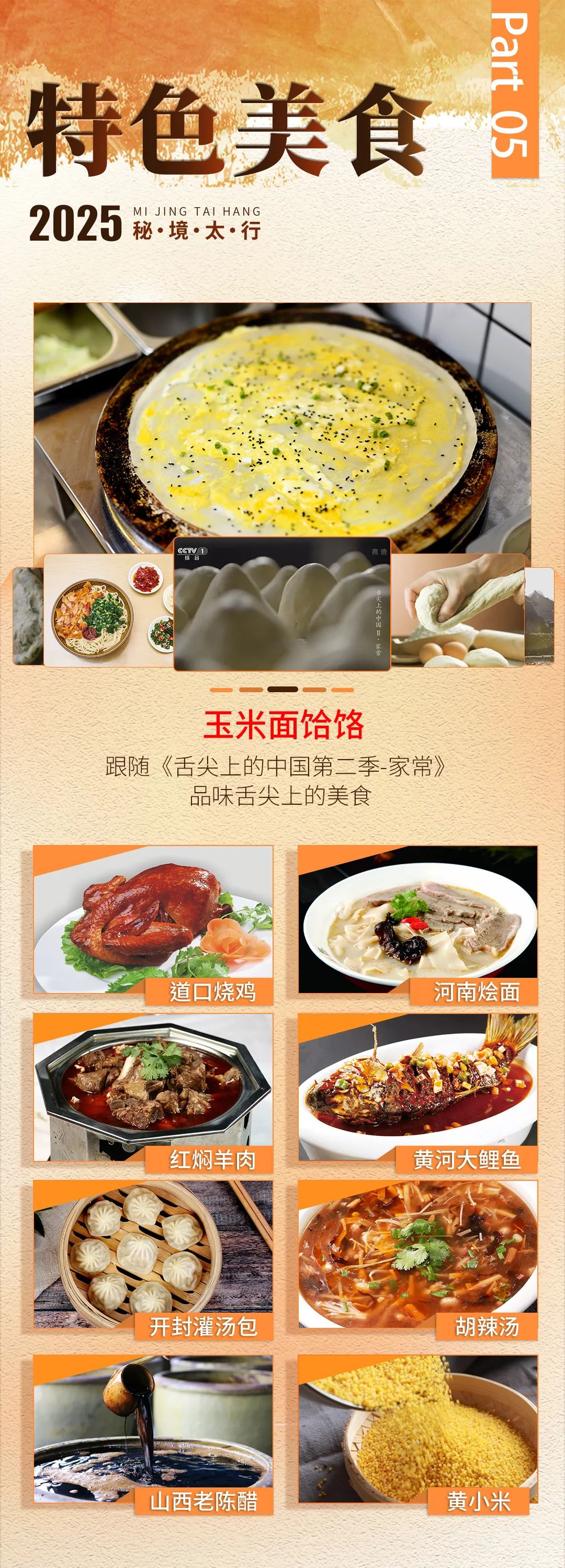 早餐后,出发前往【万仙山景区】。我们将徒步行走这世界第九大奇迹——【郭亮挂壁公路】,亲身感受十三位壮士锲而不舍的精神。站在【崖上人家】观景台上,200余米高的赤红色太行绝壁在你的面前,在你的心里横冲直撞。挂壁公路横挂其上,如梦如幻。来到【炮楼】,远处轿顶山如天宫一般,镶嵌在数百米的绝壁之上,何其壮观。在【天梯】,我们还能看到老一辈郭亮人对外沟通的唯一道路挂在崖壁之上。
