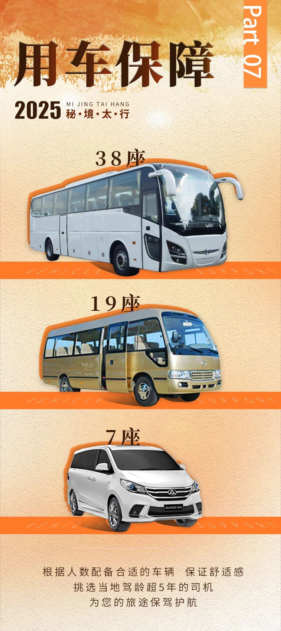 出发前一天:系统将向大家手机或微信上发送集合信息,包括集合地点、领队、车牌等相关提醒,如未收到,请务必联系客服确认。