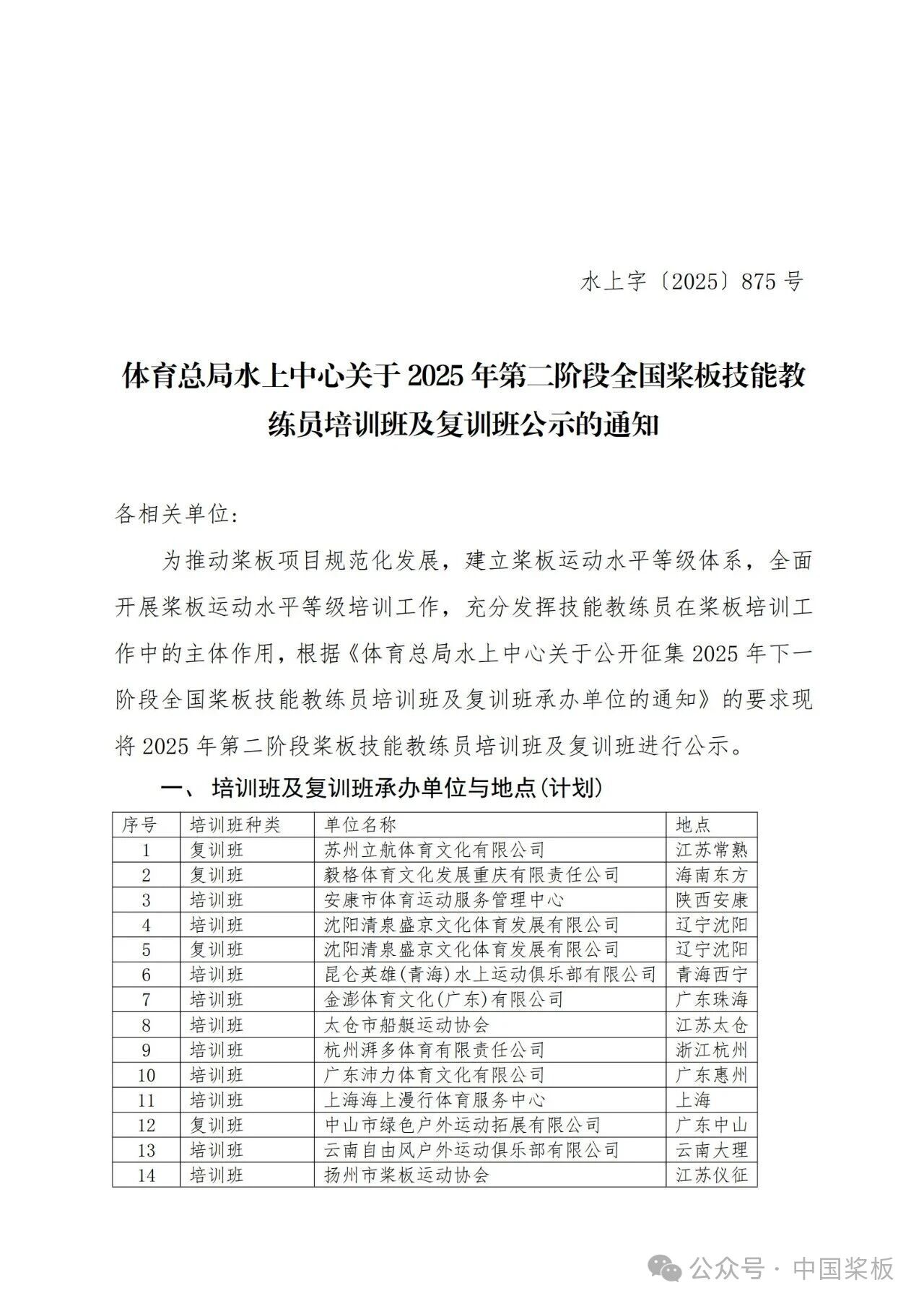 依据《体育总局水上中心关于桨板、冲浪技能教练员复训事宜的相关通知》规定,2025年桨板技能教练员复训班将定于2025年12月13-14日在佛山高明山湖谷举办。