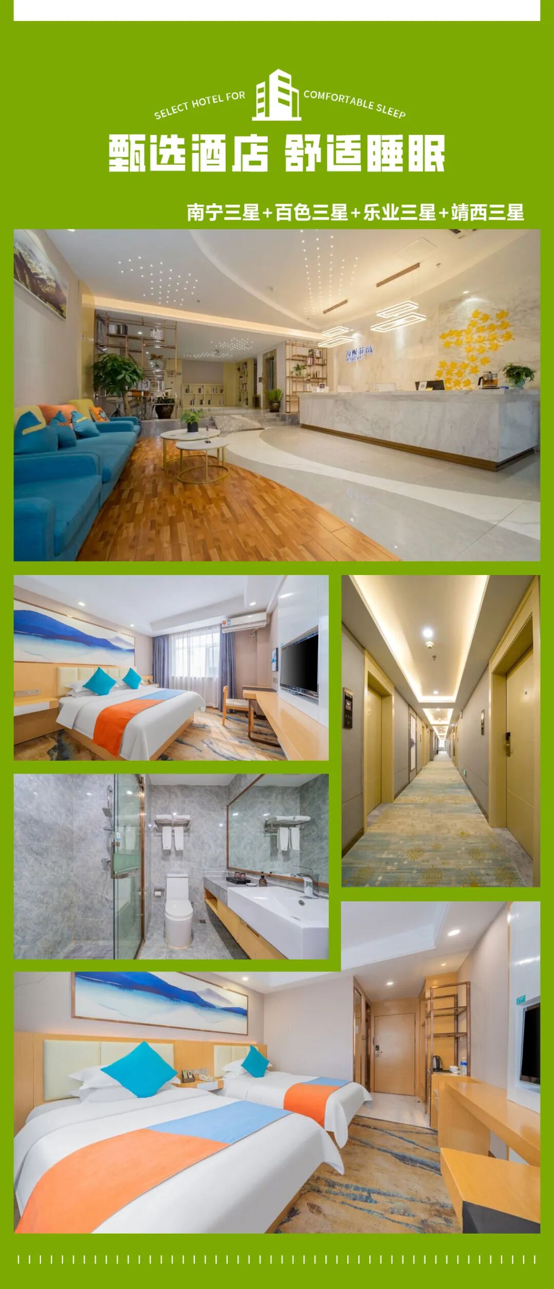 2.住宿:南宁三星酒店,百色三星酒店,乐业酒店,靖西三星酒店,单人报名组织方优先安排同性拼,如遇到无同性法拼房4天需要补房差400元,5天需补房差500元,春节4天房差600元,5天房差700元)