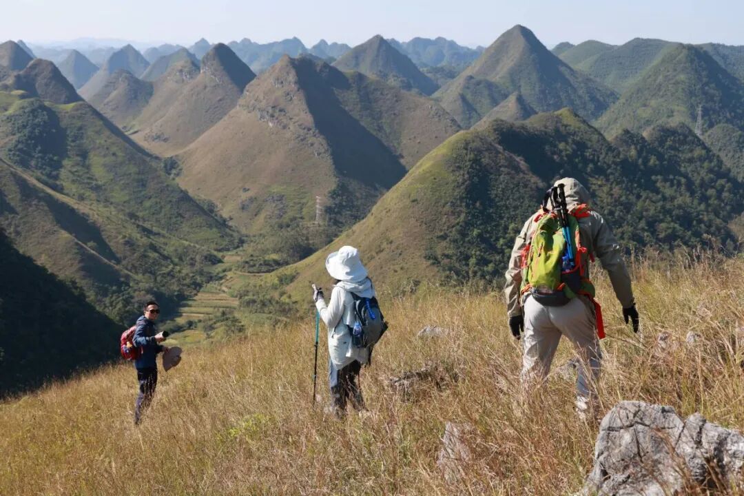08:00早餐后出发,坐车1小时到达浩坤湖徒步起点,今天徒步网红浩坤湖穿越线,全程约13公里,爬升500米,徒步6小时左右。中午也是路餐干粮。这里也是广西山水经典的徒步景色