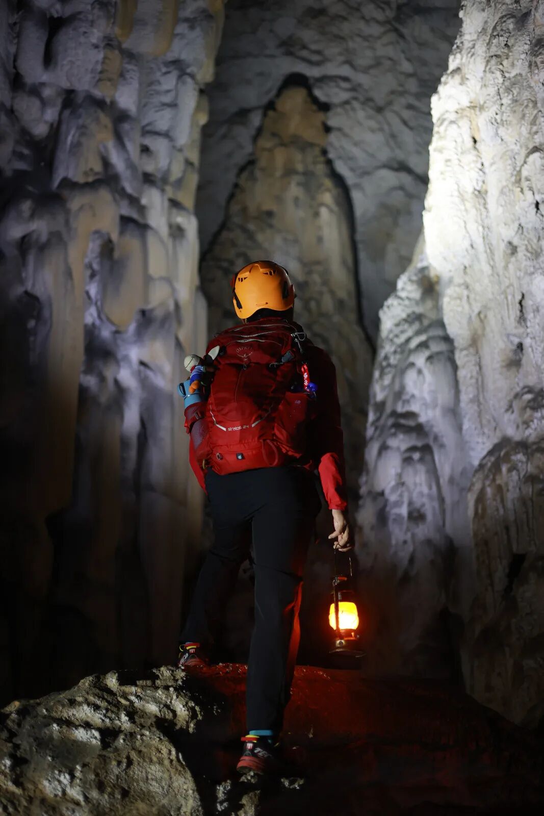 07:30徒步地心之旅。5小时的熊家俩洞连穿徒步穿越,线路很成熟,地心之旅徒步大会精华段就这里。这个季节,最合适早起登山,先进行一小段的登山,今天的午餐是路餐,只能是在洞里吃,带上温水,还有干粮,一起探索神奇的天坑溶洞世界吧