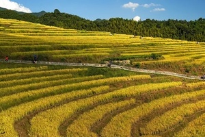 13:00 跟着领队沿乡间小路步行15分钟,漫步在金灿灿梯田间,眺看层层叠叠的梯田,也可自由活动,走走逛逛;